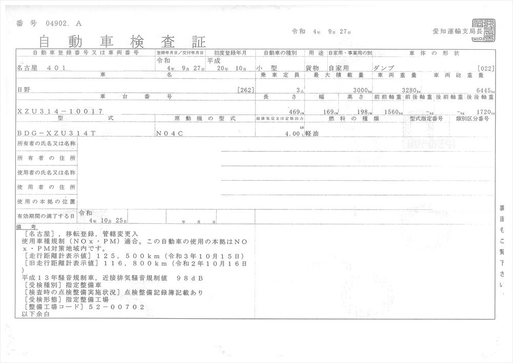 | コメント | 重機積み 土砂積み 兼用 スライドボデー ローダーダンプ 花見台 型式:20210 積載3t 日野20年式 車検切れ ナンバー付 車検楽です BDG-XZU314T 3人乗り 価格のお問い合わせ052-821-1557名輸自動車 中谷(ナカヤ)までお電話お待ちしてます。 |