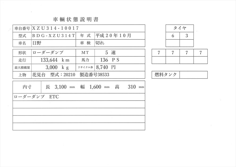 | 荷台内寸 | 310×160×31cm 長x幅x高 |