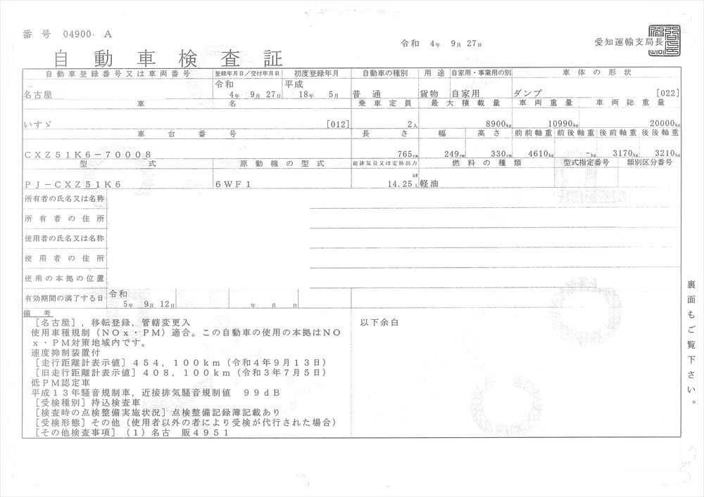 | コメント | いすゞ 18年式 車検5年9月12日 土砂ダンプ 新明和ボデー 長5.1m 巾2.2 高55㎝ DRS11-02JB 自動シート 7速ミッション 370馬力 PJ-CXZ51K6 走行45万㎞ 価格のお問い合わせ052-821-1557名輸自動車 中谷(ナカヤ)までお電話お待ちしてます。 |