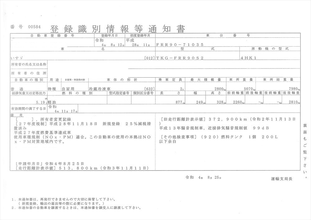 | コメント | いすゞ 平成28年式 TKG-FRR90S2 210Ps 6速ミッション 冷凍機 東プレXVLOC-U 低温ガスR404a -30℃設定 格納パワゲート新明和 (縦1550×巾2300) ワイドボデー 長6.2m 巾広2.29m 高2.07m 左サイドドア(巾900×高1960) ラッシング2段 エバハウス バックモニタ 走行61万㎞ 断熱リヤアオリ80mm 価格のお問い合わせ052-821-1557名輸自動車 中谷(ナカヤ)までお電話お待ちしてます。 |