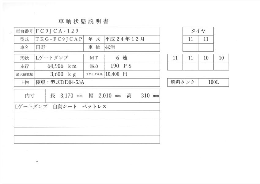 | コメント | 日野 Lゲートダンプ 極東:型式DD04-53A 自動シート 走行6万㎞ ベットレス 価格のお問い合わせ052-821-1557名輸自動車 中谷(ナカヤ)までお電話お待ちしてます。 |