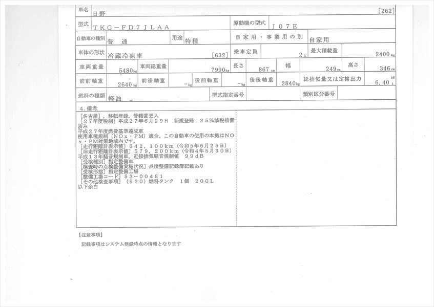 | コメント | 冷凍機:菱重 TDJS50DB ボデー 長6.2mワイド2.37m高2.28m 240Ps 6速ミッション エバハウス ラッシング2段 床アルミしま板 バックモニタ TKG-FD7JLAA 積載2.4t 走行64万㎞ 53万4千㎞走行時 新品E/G乗替 乗せ替え後11万㎞走行 価格のお問い合わせ052-821-1557名輸自動車 中谷(ナカヤ)までお電話お待ちしてます。 |