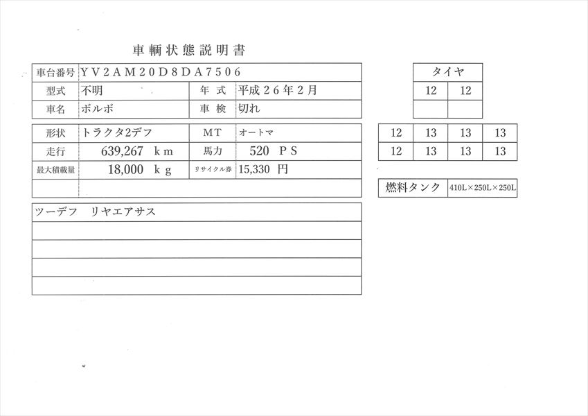 | コメント | ツーデフ リヤエアサス 520ps 第5輪18t オートマチック ボルボ 車検 切れナンバー付 タイヤ 全部 良 走行63万㎞ 価格のお問い合わせ052-821-1557名輸自動車 中谷(ナカヤ)までお電話お待ちしてます。 |