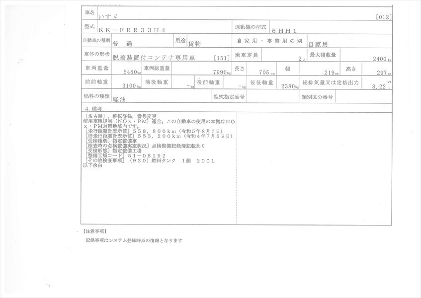 | コメント | クレン付 アームロール(ヒアブ製 HL-5JS) ユニック3段 フックイン 車検8月 価格のお問い合わせ052-821-1557名輸自動車 中谷(ナカヤ)までお電話お待ちしてます。 |