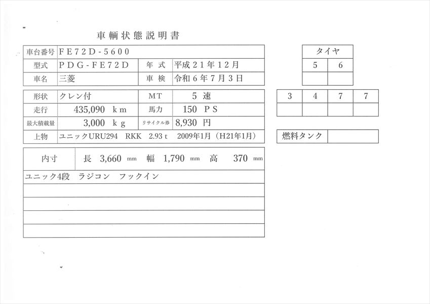 | コメント | ユニック URU294 RKK 4段 ラジコン フックイン 2.93t吊り 車検 令和6年7月 積載3t 三菱キャンター 平成21年式 150ps 5速ミッション MFG.DAGE2003 1 ワイヤー新品 取り替え済み エアコン点検済 価格のお問い合わせ052-821-1557名輸自動車 中谷(ナカヤ)までお電話お待ちしてます。 |