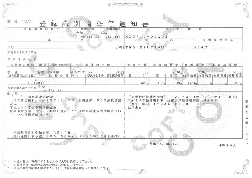 | 荷台内寸 | 435×191×58cm 長x幅x高 |