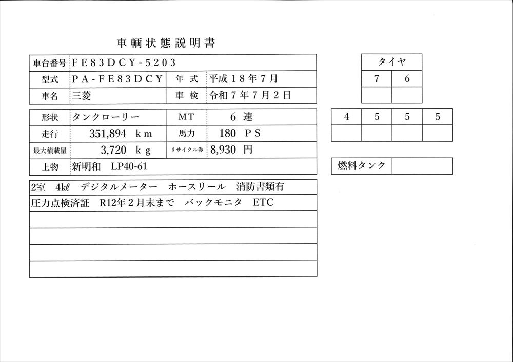 | コメント | キャンター 4KL 2室 車検 7年7月2日 デジタルメーター ホースリール 消防書類有 灯油 軽油 圧力点検済証 R12年2月末まで 新明和 バックモニタ ETC 6速ミッション 180ps 価格のお問い合わせ052-821-1557名輸自動車 中谷(ナカヤ)までお電話お待ちしてます。 |